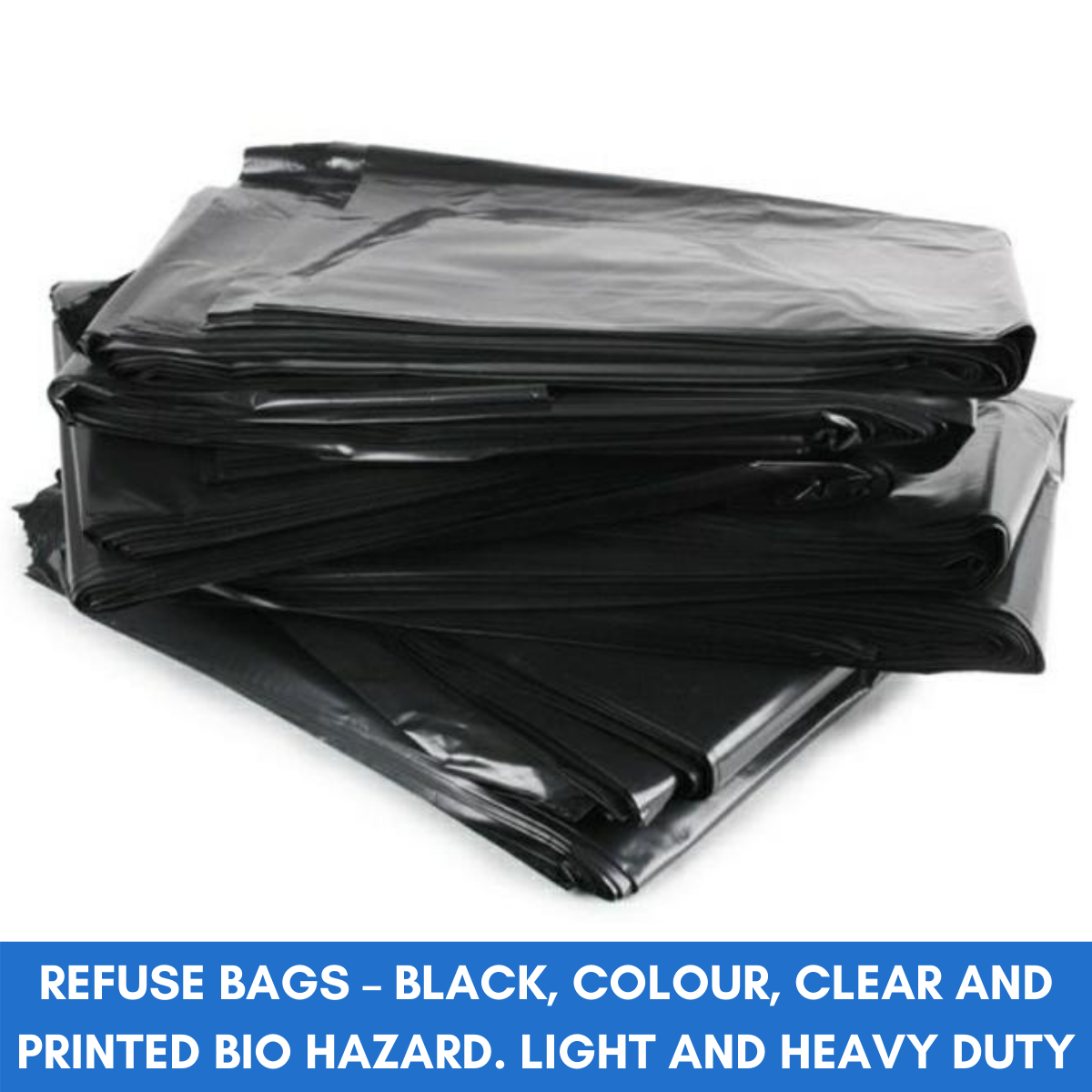 - Refuse bags – black, colour, clear and printed Bio Hazard. Light and heavy duty